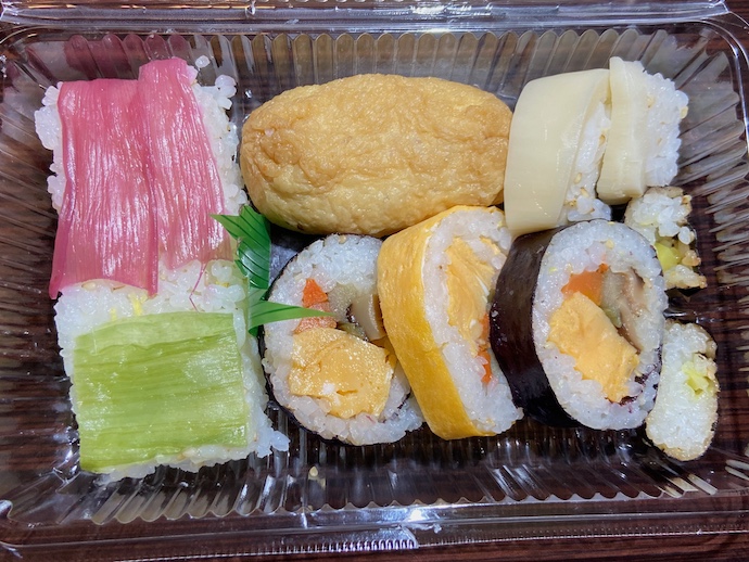 高知名物田舎寿司は、作り手によりさまざまな変化があるようだ。いつも買うのは日曜市に出ているおばちゃんたちの店だが、スーパーなどの食品売り場ではほとんど見かけない。気になってイオン高知まで出かけてみたが、あのローカルネタ大好きイオンも、これには手を出していないようだ。トッピングに使われるミョウガとか筍がなかなか乙な味なのだが。酢飯にゆず果汁を使っていると、これまた爽やかな野菜寿司という感覚が強まる。