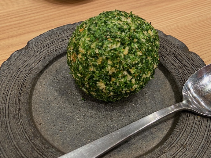 なぜ広島でと言いたいが、一番喜んだのがボール型ポテトサラダだった。見た目は一回り小さいテニスボールくらいだ。周りにびっしりと青のりがついている。見た目は苔玉みたいだ。