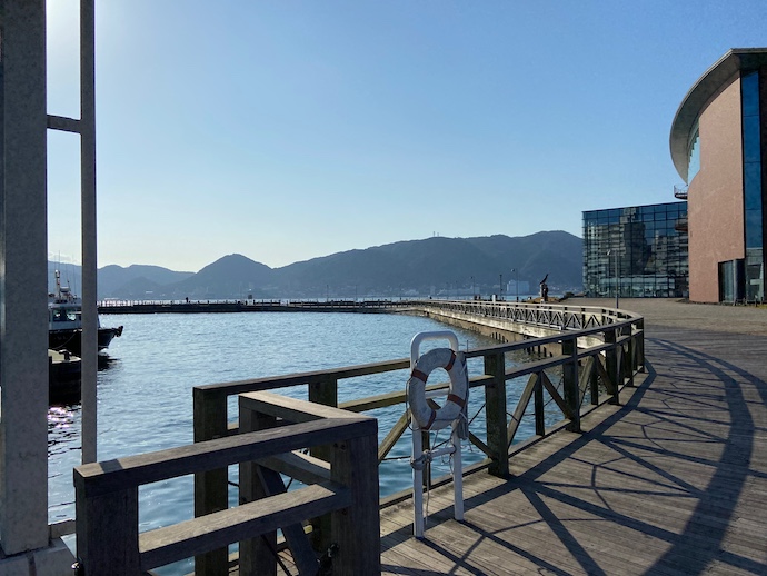 その商売の場所を見てみたいということだったのだが。実際に海峡を下関側から眺めてみると、これは海というよりほぼほぼ川ではないかとおもった。対岸の九州はあまりに近い。
