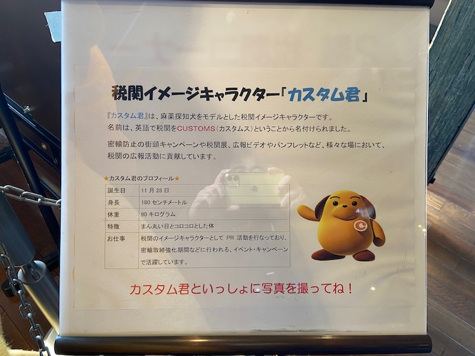それでもスポンサーである「税関」のアピールも多少なりとはしたいようで、隅っこの方にこじんまりとした展示があった。官製ゆるキャラもいるに入るのだが、これはどこかでみた記憶が……………いや、官製なのだ。違法コピーというはずがない。他人の空似だろう。ただ、名前がカスタム君とある。税関だからカスタムなのか、税関向けに「カスタム」したせいで、他人の空似状態になったのか?