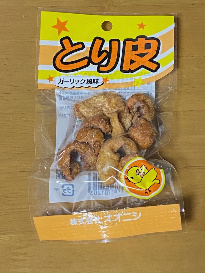 味は、軽い塩味で鶏皮のチップスとでもいうべきだろう。カリカリ揚げた鶏皮だと思う。なんとも捻りのない名前だが、その名前の通りの商品なので文句のつけようはない。ただ、自分の人生でもう一度食べる機会があるかというと微妙だ。