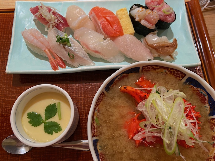 カニ汁万歳な鮨屋は北海道でも珍しいので、もし見つけたらお試しください。ちなみにカニの足を割って身を食べようとすると、かなり熟練の技が必要なので、併せてそれもご承知奥ください。