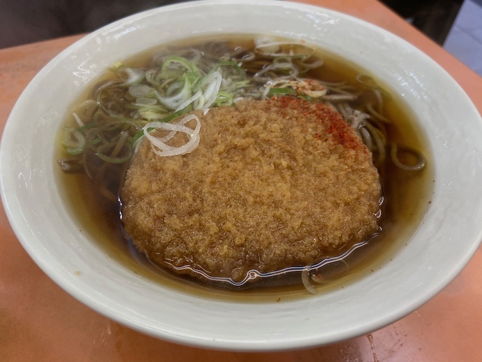 汁を吸ってぐだぐだになったコロッケは、そばを食べ終わったあとに、最後の締めとして一気に食べる。なんとなく貧乏感丸出しな食べ方だが、お江戸に出てきて初めてコロッケそばを食べて以来、この食べ方はずっと変わらない。まさにチープの王道だ。