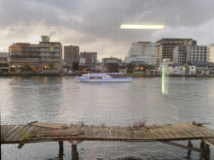 カウンター席は川に面している。夕暮れ時の光景はなかなか風情がある。これが、陽が落ちた後であると、もっと飲み屋的な情緒がますのだろうなあ。ちなみにこの店の前にはバス停留所があり、飲んだ後に駅までバスで帰ることができる。超便利スポットだった。ありがたや。