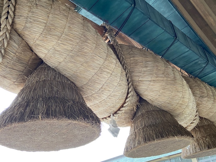 いつ見てもすごいものだなと思う巨大しめ縄だ。作るのも大変だろうが、吊るすのはもっと大変だ。昔は人力で作業をしたはずだが、今では重機のお世話になるのだろうか。