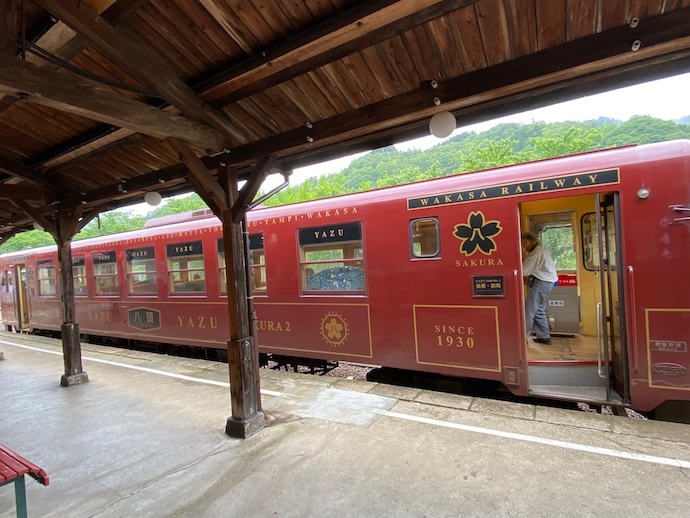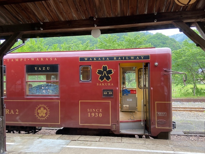 若狭鉄道の車両は落ち着いた赤だった。計画では姫路まで通じる中国地方東部の幹線になるはずだったが、工事は諸事情で中断され放置された。廃線の話が出ると、存続論が高まり、そのままJRから分離された典型的なローカル(おまけに過疎地)路線だ。今では観光路線として再生を図っている。