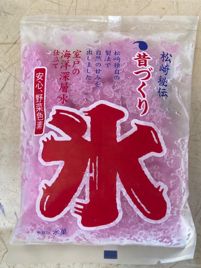 この日の高知は気温が30度を超え、体感的には夏だった。近くのコンビニに入ったら、なんとも目立つものがショーケースにあり衝動買いしてしまった。かき氷の袋詰めだった。このピンクの色が「おーい、あついだろう。こいつを食べてひんやりしようぜ」と語りかけてきた。