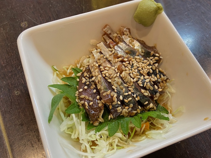 この店のごま鯖は、刺身にたっぷりのごまという作りだった。