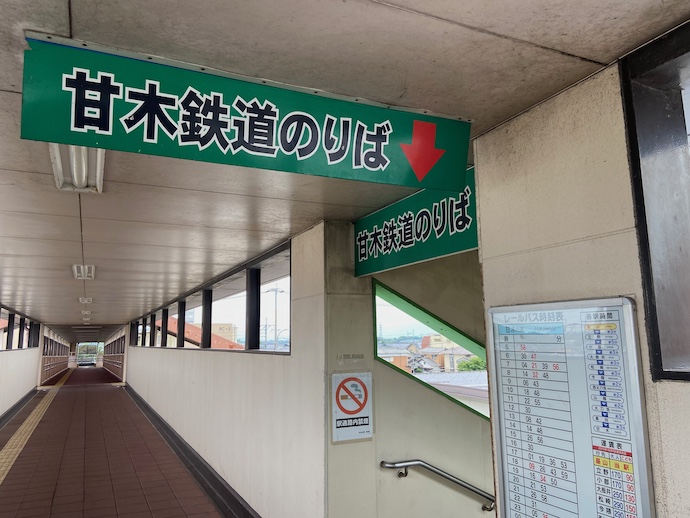 JR基山駅から甘木鉄道に乗り継ぐには一度改札を出て連絡橋を渡ることになる。なんだか、JRは元の姉妹路線に冷たい対応ではないかと思ってしまう。