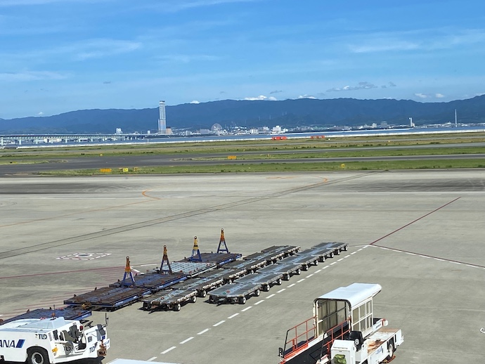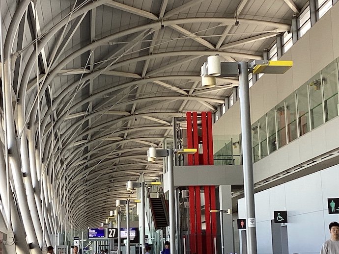 関空は人工島なので、本土と島を結ぶ橋がある。それを見たのは初めてだった。これはなかなか見応えのある景色だと思う。台風の大波で空港が水没したという事件を思い出しだが、確かに海面には近い。海沿いにある空港は多いが、この関空は周りが全部海だから、見栄えは良いのだ。