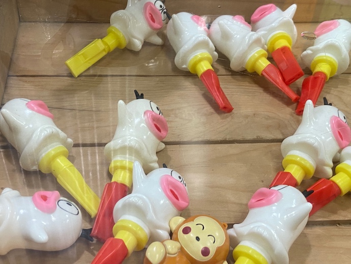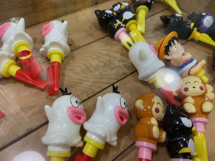 こんな玩具は今ではすっかり消滅していだろうと思っていたが、よくみると最近の人気アニメキャラがいるではないか。となると、このおもちゃ、まだどこかで現役で活躍しているということか。びっくりだ。どこで売っているのか?