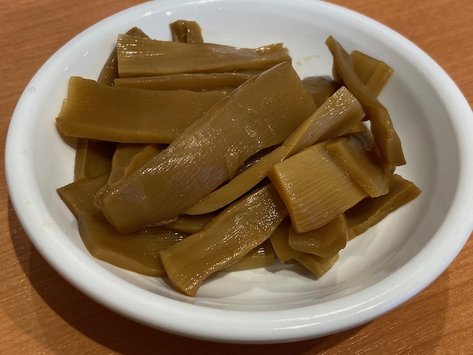 追加で頼んだのはめんまだが、これはちょっとブウたれたい。せめタレで味付けするくらいはしてくれないものだろうか。あまりにも手が入っていない。だからと言ってまずいというつもりもない。このめんまに卓上にある胡椒とラー油と酢をかければ立派に味変する。自作味変めんまの小皿は簡単に作れる。