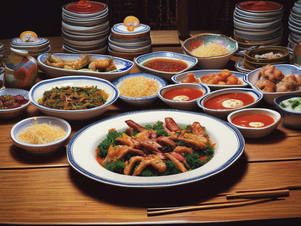 再生成してみた。今度は豚肉の唐辛子炒めみたいなものと、そのまんまではないが「めんま的」おまけ食材が大量出現してきた。箸は二膳あるが、小皿料理は三皿ずつ出ているので、これは三人前の画像なのか。
