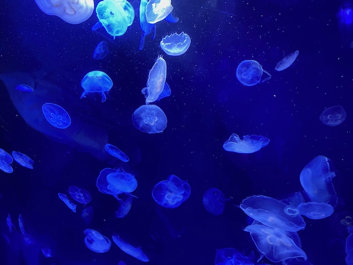 さて、水族館の出し物はいろいろあるのだが、兎にも角にも感激したのは幻想的なクラゲの光景だった。