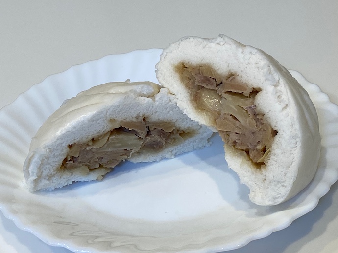 さて、再加熱して熱々を実食した。高級中華まんなので期待度は高い。が、どうも好みとは違っていた。まず、単純に味が薄い。ただ、これは横浜中華街本店の味を再現しているのだとすると、この肉まんは饅頭単独で食べるものではないのだろう。他の中華惣菜?と合わせて食べる設計なのではないか。