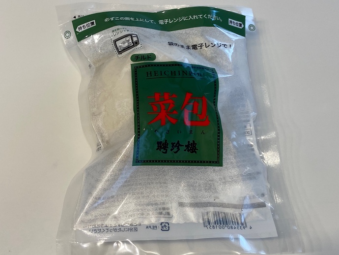 2日目、野菜入りの饅頭を試すことにした。包装は肉まんとほぼ同じ。肉まんは赤い印刷、野菜まんは緑の印刷なので、個包装になっていても間違えることはない。これはかなり重大なポイントだ。野菜まんも赤い印刷であれば、おそらく簡単に見分けはつかない。饅頭の外見は真っ白で目印もないし。大きさも同じだ。この辺りは商品としての気配り・完成度がなかなかのものだと感心した。