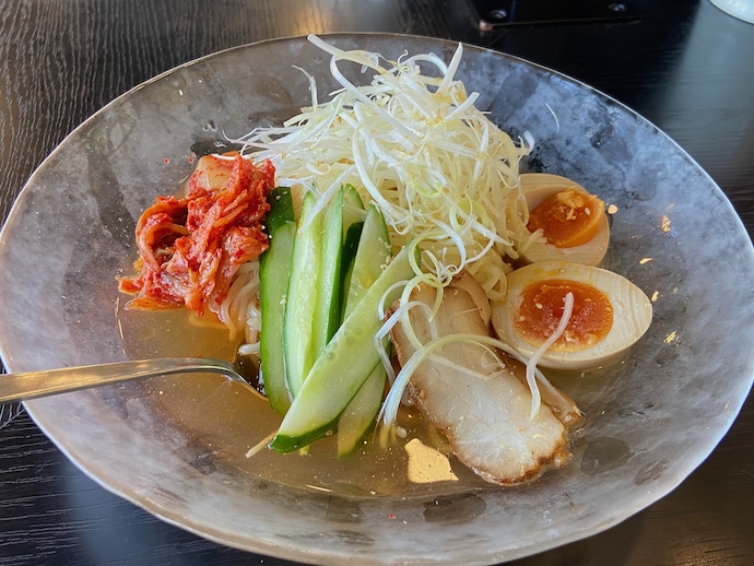 中華料理屋で高級麺を食べると、スープの作りがラーメンとは全然違うと感じることがある。あの感じに似ているが、中華料理屋の場合はアップグレード感がある。こちらの冷麺は、どうもダウングレード感が漂う残念さだ。