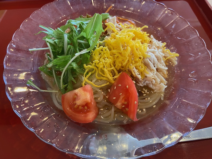 おそらく今年食べた冷麺のベストだと思う。麺とスープ、どちらも冷麺らしい。太めのもちもちとした歯触りの麺と、コクのあるすっきりとしたスープのバランスが良い。トッピングは冷麺的というより冷やし中華的だが、お決まりのキムチが多めに入っているのが良い。