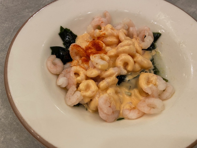 昔はサラダのトッピングに使われていた小エビが、最近は単品で食べられるようになった。甘めのドレッシングがうまい。イタリアンなのにワカメが使われているのがちょっとおかしみがある。前菜というより副菜という感じの量だ。