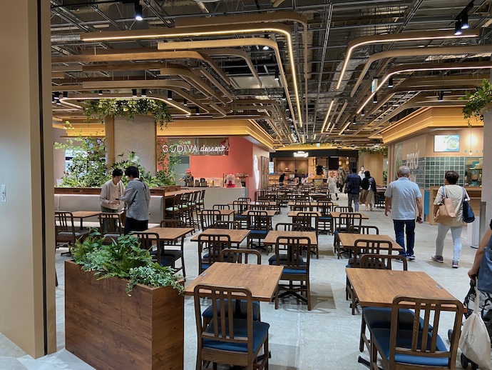 コロナの後遺症というべきか、通路幅も含めて空間には余裕がある。またファミリーレストランのように多人数が同席するような場所よりも、少人数で使うテーブルが中心で、この辺りがショッピングモールのフードコートとは一番違う感じがする。