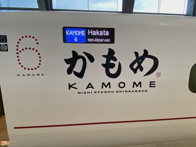 まあ、そういった事由は色々あるのだが、とりあえず乗ってみようと、旅程では少し遠回りになるが長崎経由で移動をした。先頭車両は最近の高速車両の特徴である鼻先の伸びたものだったが、ライト周りがお化粧されている。なんと、まつ毛か描いてある。なんだか、ふーんという感じがする。