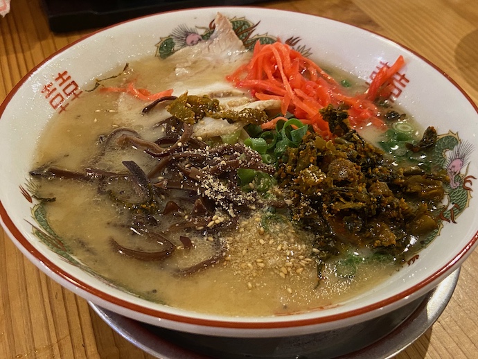 出てきたラーメンを見ると、博多ラーメンに近い。食べてみれば、見た目とは若干異なり博多ラーメンよりあっさり系の豚骨スープだった。福岡県、佐賀県、長崎県の北部九州は食文化的には近しいのだろう。ただラーメンということで言えば、隣県である天草諸島を挟んだ熊本県とはちょっと違うような気もする。地続きと海の向こうの違いかもしれない。