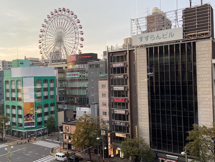 そのススキノ新商業ビルからバブルの頃にできた観覧車付きのビルをのぞいてみた。札幌都心部はバブルの後遺症で30年以上ビルの建て替えが止まっていたが、ここ数年一気に古いビルが建て替えられた。メインストリートは一新された感がある。が、薄野界隈は全くと言っていいくらい変わりがない。古いビルが立ち並んでいるし、そのほとんどが築50年を超える。