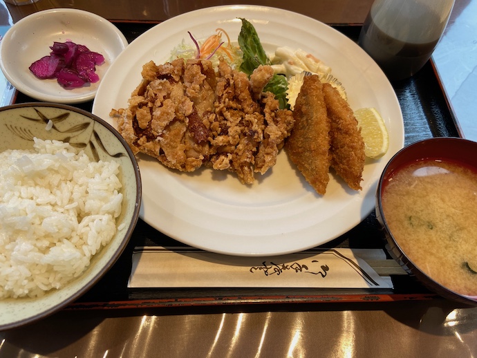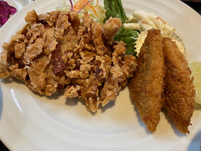 横についているのはオマケの白身フライだが、こちらも自家製らしきタルタルソースにつけて食べると感動するうまさだった。山賊焼がホームランバッターだとすると、白身フライはスマッシュヒットを重ねる技巧派バッターという感じだろう。