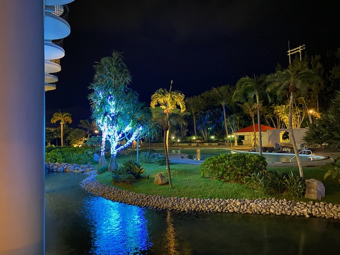 昔々、会議で海外のリゾート地に行ったことがある。参加者が100名を超える会議の場合、シティーホテルよりリゾートホテルの方が運営費用が安いからだと説明を受けた。ただ、アジアのリゾートは田舎にあるので夜の街は暗い。写真を撮る気にならないほど暗かった記憶がある。ホテルから見る夜景がこんなに明るいのは、ハワイくらいではないか。