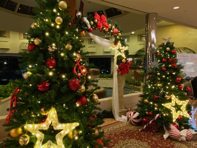 沖縄で開かれた大規模商談会の会場は、那覇市からだいぶ離れたところにあった。海沿いのビーチリゾート的な立地で、周辺には多くのリゾートホテルが並んでいた。その宿泊先のホテルに入ったら、ロビーにクリスマスツリーがデデーンと構えていた。確かに11月後半になっているから、ちょっと気が早いがクリスマスデコレーションは不思議でもない。