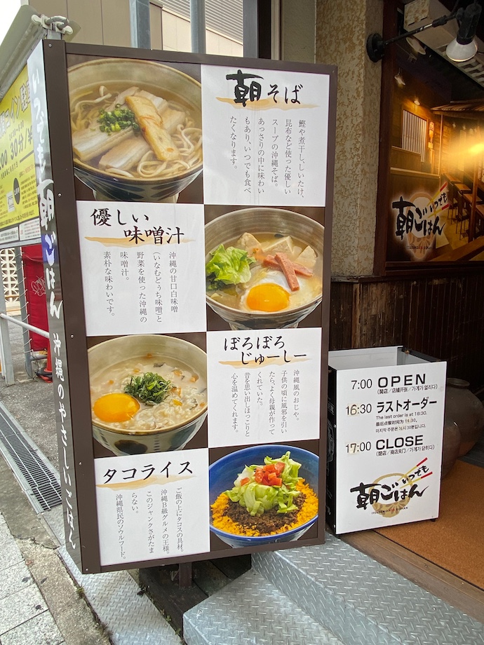 どうも店名が「いつでもあさごはん」というらしい。朝7時に開いて夕方5時に閉まるらしい。これはありそうでなかった業態だなあと感心した。確かに、朝食はあまりヘビーなものはないから、軽く食事をしたい時には「朝ごはん」があっている。ただ、メニューを覗き見すると、朝そばもこってい肉が乗っているし、タコライスを朝から食べるのはいささか重たい気もするが。それでも昼飯には入ってみたい店だった。