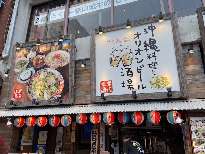 圧倒的に目を引く看板があった。沖縄料理と定番オリオンビールを「推し」まくっている。わかりやすいし、夜だったらふらふらと入ってしまいそうだ。飲食店の看板はこうあるべきと言いたいお手本のような看板だ。