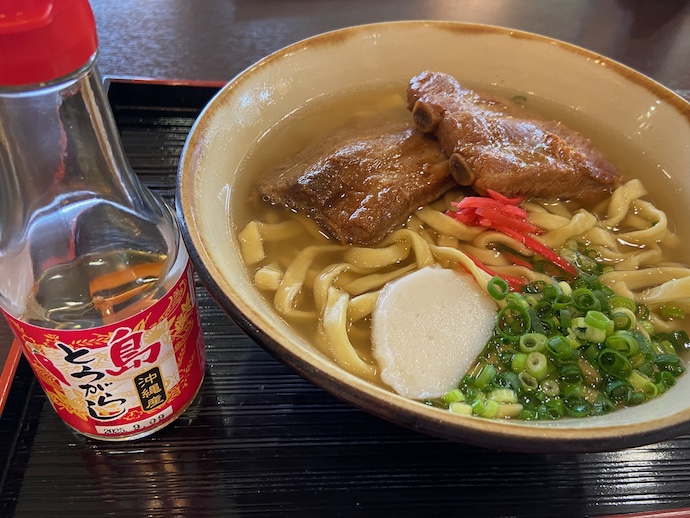 結局、迷いに迷った末に、普通の味のソーキそばを注文した。鰹出汁の効いたシンプルなそばに、こってり系の骨付き肉を乗せたソーキそばが好物だ。三枚肉の甘辛に似たものを乗せた沖縄そばも良いが、やはりソーキの魅力には勝てない。