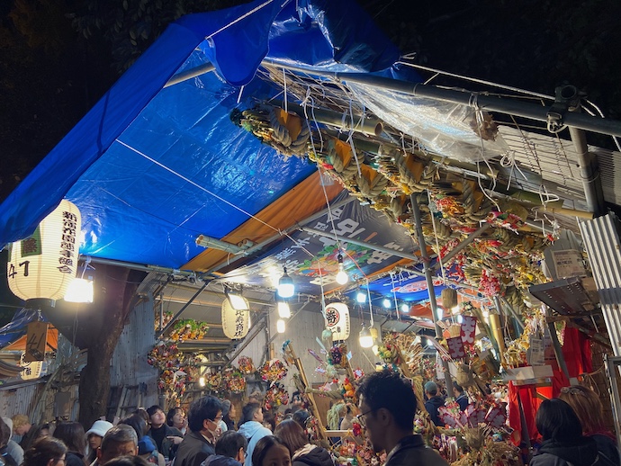 行った時間も遅かったせいで、熊手もほとんど売り切れていた。験をかついで熊手を求める人、商売人はもっと早い時間にお参りに来るのだろう。
