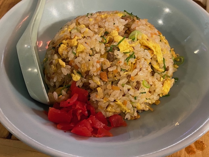 ただ、以前来た時に隣の席にいた女性がオムライスご飯少なめという注文を敷いていたから、チャーハンも注文する時に自己申告してご飯少なめと言えば、やってくれるのかもしれない。