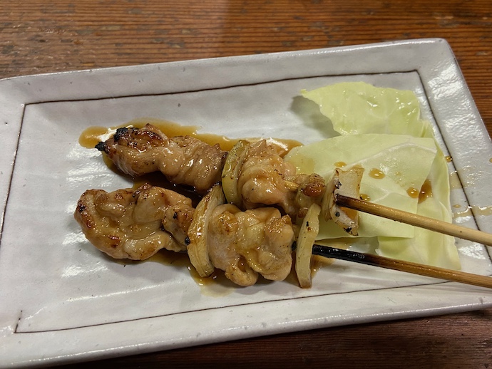個人的に好物としているのは鶏皮の酢の物だが、これも鮮度感良し。川のコリコリ感良し。上等な食べ物だった。酒は地元の普通銘柄を頼んだが、これまた適切なぬる燗が出てきた。どうも最近は機械で感をつける店の大半で、缶の温度が高すぎる。まるですし屋のお茶のような高音の熱燗が出てくるのには閉口する。焼き鳥はぬる燗が良い。酒の味が柔らかくなる気がする。