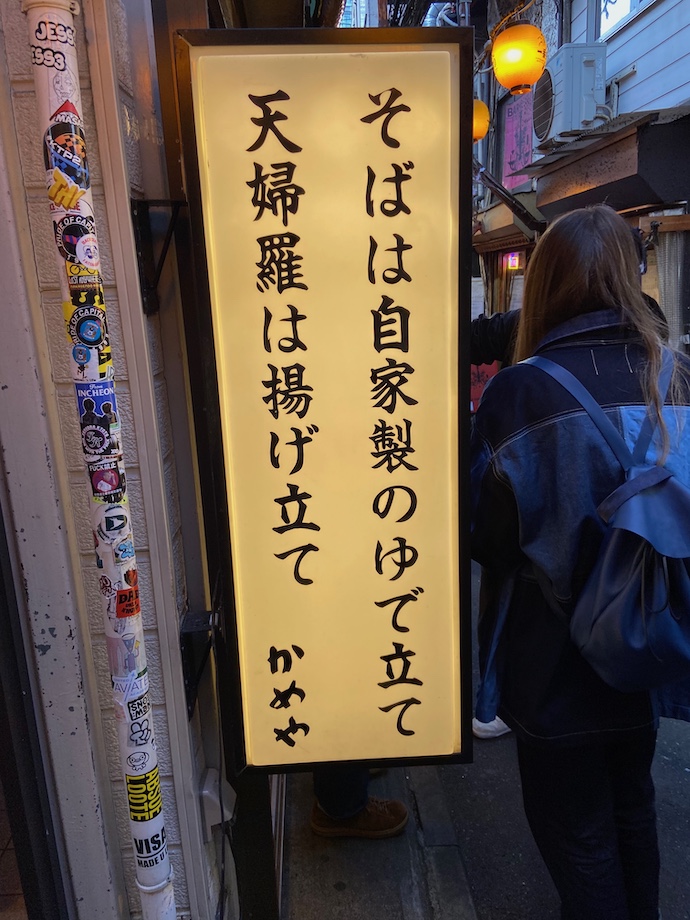 ただ、気になるのは背中で英語の会話が聞こえてきて、どうやら席が開くのをまっているらしい。ちょっと待て、この店には日本語で書かれた品書き板しかないぞ。どうやって注文する気だ。唯一日本人の聖域として残っている「純和風立ち食い蕎麦屋」がついに文化的侵略を受けているようだ。