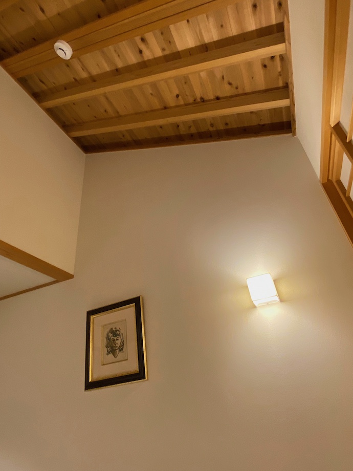 部屋の天井は木が剥き出しだが、これがやはり良い感じだ。宿の主人は実家の旅館を継ぐまでは美術関係のお仕事をしていたそうだ。人として感性が違うのだな。自分のようなおっさんでも、このホテルの良さ、細部までこだわった作りは理解できる。