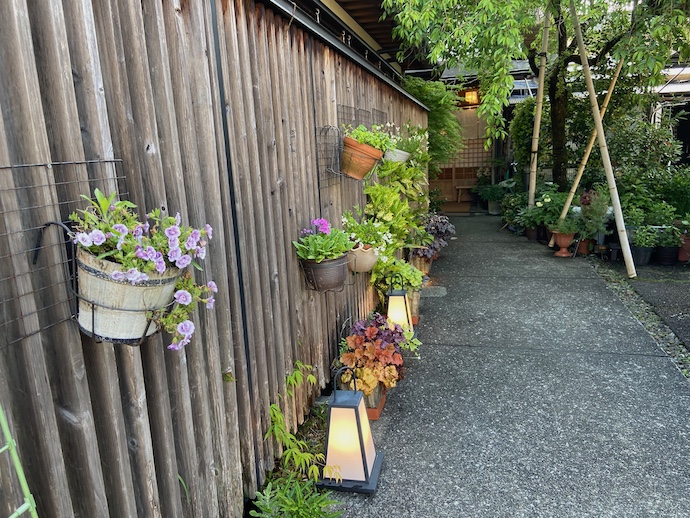 チェックインするフロントは別の建物にある。食堂もそちらだ。ただ、そこに至るたる小道というか小路というか、それがまた風情がある。こういうのは計算され尽くしたものだと思うが、良いホテルは細部にこだわるものだ。作り手の感覚が優れているのだろうなあ。自分位は無理だと思う。