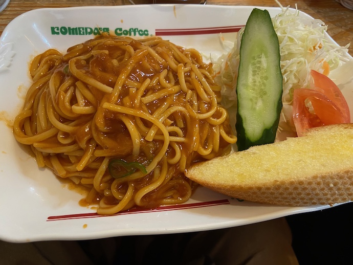 そんなあれこれ小難しいことを考えながら、さて昼飯は何にしようかと悩んでいたら、名古屋発のあんかけスパを発見した。実はこれが好物で、長年続けた名古屋飯探求の引き金にもなった名古屋名物だ。