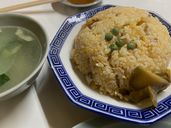 餃子の追手に頼んだのがアサリチャーハンで、これは珍しいものだ。チャーハンに入る魚介系と言えばエビとイカが双璧をなすと思っていたが、アサリはすごい働きをしているのだなあと感心した。
