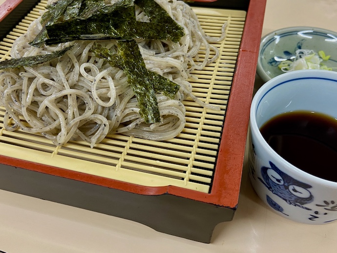 この日は遅い昼飯を昔馴染みのラーメン屋でと思っていたのだが、なんと定休日だった。そこで、急遽予定を変更してこの店に来た。海苔のついたそばを一本つまみ、蕎麦つゆにつけ啜る。それから冷たい日本酒を一口飲む。どうもこれが、昭和初期までの伝統的そば屋使用法だったらしい。