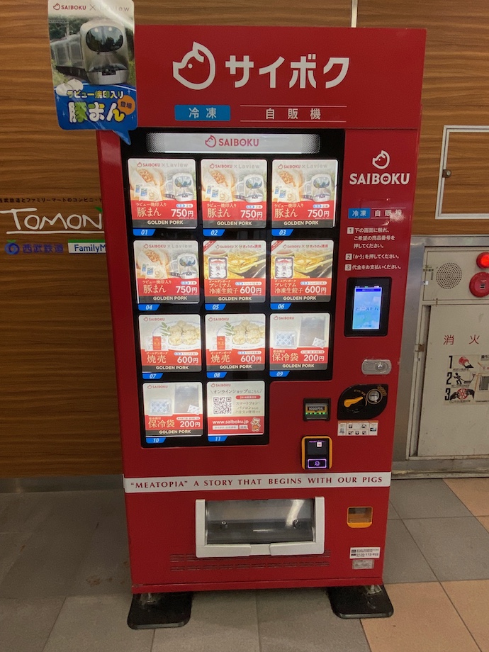 冷凍豚まんが二個入りで売られている。おまけにラビューの焼印入りという西武鉄道とのコラボ商品だった。ちなみに、ラビューとは西武池袋線を走る特急列車のことなのだが、この本川越駅には乗り入れしていない。ひょっとするとラビュー乗り入れ駅である所沢・西武秩父駅にもこの販売機が置かれているのかもしれないな。