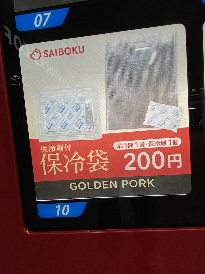 そして、何よりびっくりしたのが冷凍商品の自販機で、保冷袋が一緒に売っていたことだ。これは本当に初めてみた。