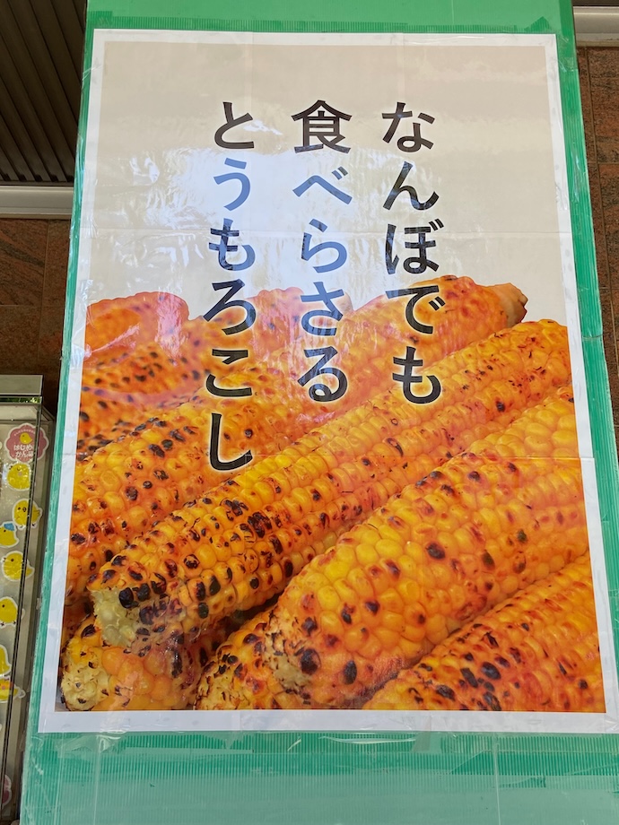 札幌大通公園近くで見つけたポスターだが、まず突っ込みたいのは「とうもろこし」ではなく「とうきび」だろう。この季節であれば大通公園内の屋台で焼きトウキビが売っているはずだ。なぜ、とうもろこしというかな?