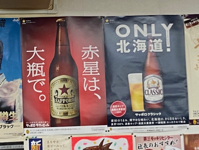 そのビールポスターだが、やはりご当地ビールのものが好みだ。北海道限定販売のクラシックは、札幌に来たらとりあえず一度は飲んでみる絶対定番だし、たまには昔懐かしのラガー、赤星も良いなと思う。