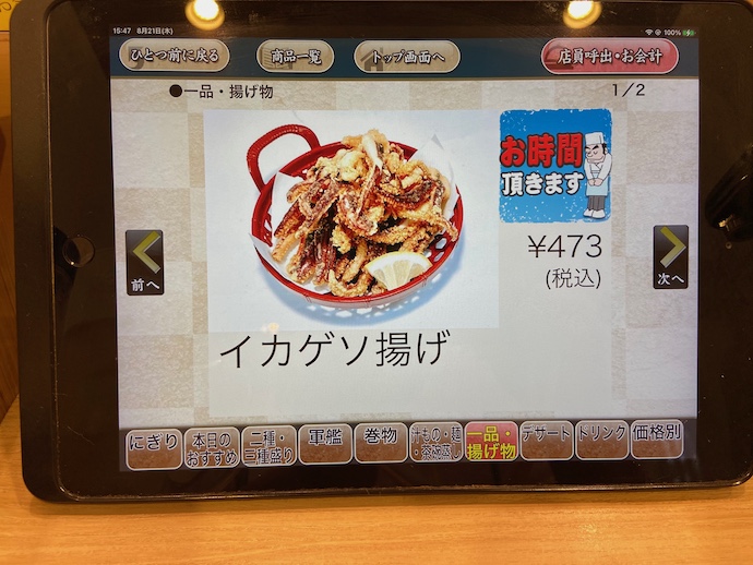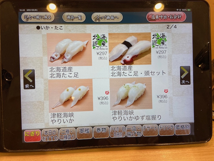 ちなみに、この店では回転レーンは動いているが、注文はタッチパネルでするので、回っている寿司を取り上げることもない。(週末のピーク時には満載で回っているとのことだが)