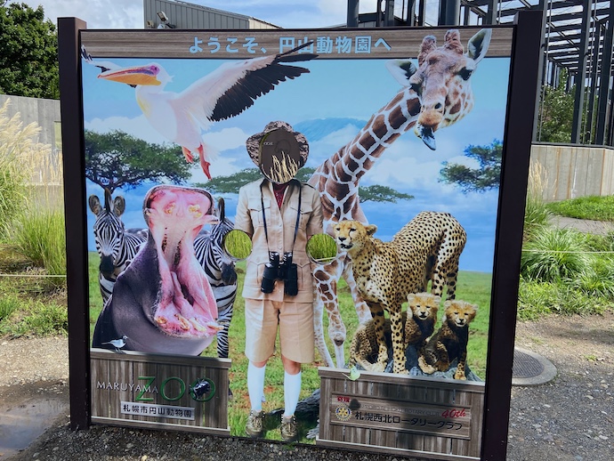 顔出し看板に載っている動物を全部見てみようと思ったのだが、意外と暑さのせいなのか、奥に隠れて寝ている連中が多いようで、屋外に出張っている暑さに強い動物たちしかみることができなかった。