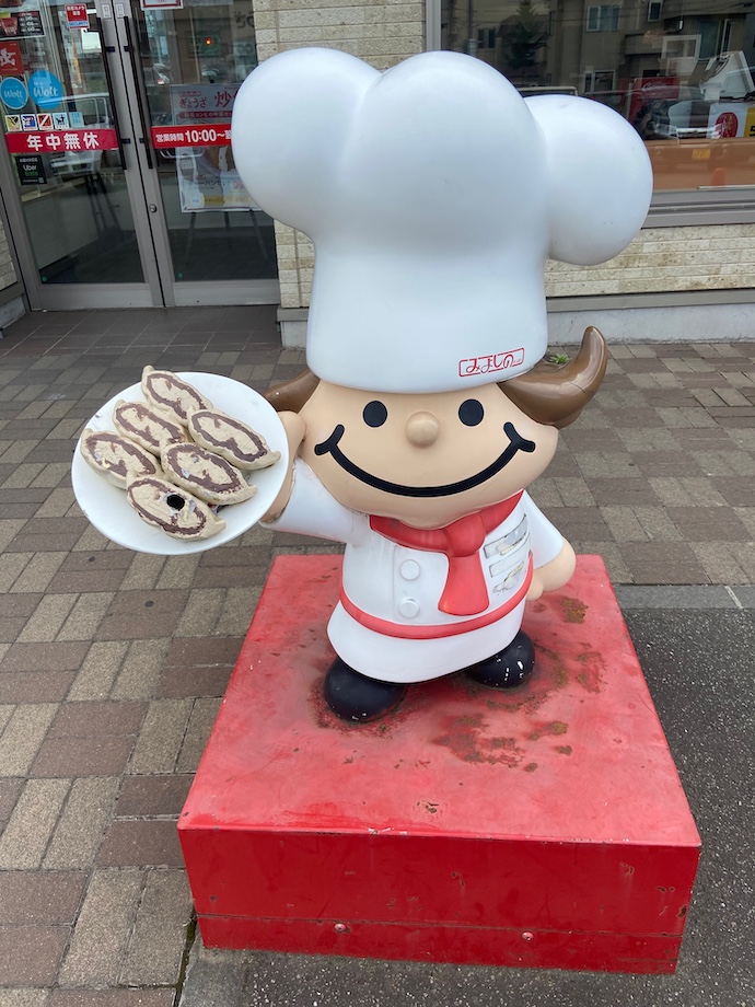 衝動的にみよしのに行くことにしたら、店頭に不思議な少年?が立っていた。手に持っているのは餃子らしい。うーん、この姿は例の唐揚げ店の前に立っている白髪爺さんみたいに見える。パクリ疑惑だ。が、それはまあいい。大阪に行けば串カツ屋の親父も店頭にたっている。カニが両足を広げてモゾモゾと足を動かすというシュールな光景も当たり前だ。その立体看板天国、大阪を比べればこれば控えめで可愛いものだ。