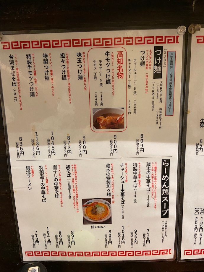 高知市の繁華街、帯屋町の路地にあるラーメン屋がずっと気になっていた。看板んを見る限りご当地ラーメンらしい。それでも牛もつという言葉が引っかかってしまい店に入るのを躊躇っていた。昼は行列ができていたりするのを見て、人気店なのだなあとは思っていたのだが。